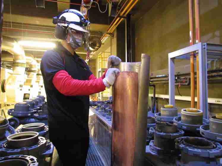 z6尊龙将废弃物转化成有效的工业或民生原物料,,,,图为废铜液淬炼后再制成纯度极高的铜管